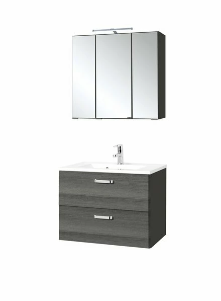 2-teiliges Badmöbel-Set BOLOGNA – Eiche Rauchsilber-grafitgrau – 70 Cm Breit