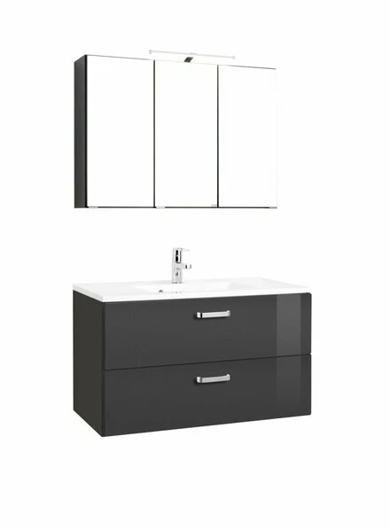 2-teiliges Badmöbel-Set BOLOGNA – Hochglanz Grau-grafitgrau – 90 Cm Breit