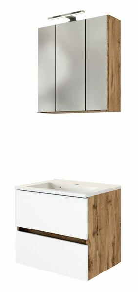 2-teiliges Badmöbel-Set LUCCA – Wotaneiche-weiß – 60 Cm Breit
