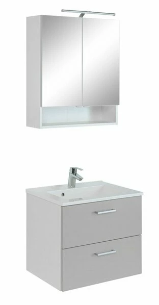 2-teiliges Badmöbel-Set RIGA – Hellgrau – Mit Waschbecken – 60 Cm