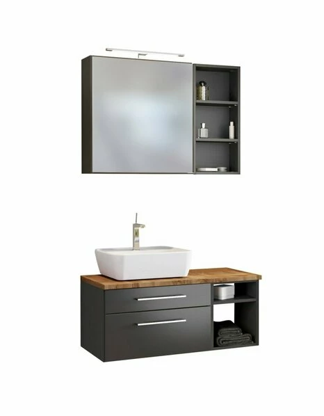 3-teiliges Badmöbel-Set DAVOS – Grau – 90 Cm Breit – Becken Links