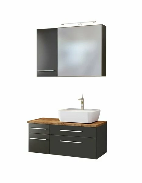 Das 3-teilige Badmöbel-Set aus der Serie DAVOS präsentiert sich im eleganten anthrazit. Die Farbe sorgt für einen modernen Look und stellt sicher, dass das Set flexibel einsetzbar bleibt und sich mit vielen verschiedenen Einrichtungen kombinieren lässt. Badutensilien verschiedener Arten können im Set entsprechend ihrem Zweck verstaut und aufgeteilt werden. Unter dem Waschbecken können Utensilien verstaut werden, die zu einem späteren Zeitpunkt genutzt werden können, Badgegenstände, die schnell griffbereit sein müssen können hingegen im Spiegelschrank verstaut werden.
