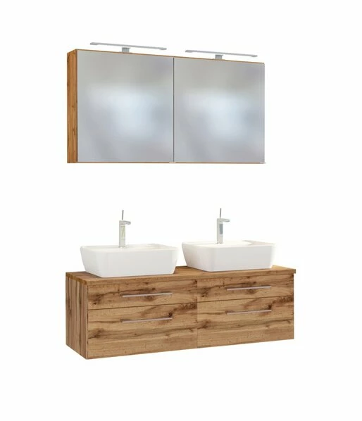 3-teiliges Badmöbel-Set DAVOS – Wotaneiche – 120 Cm Breit