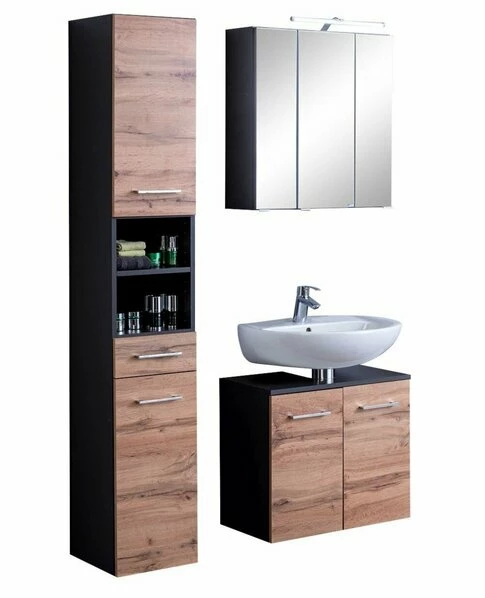 3-teiliges Badmöbel-Set PARIS – Wotaneiche-grafitgrau – Mit Beleuchtung
