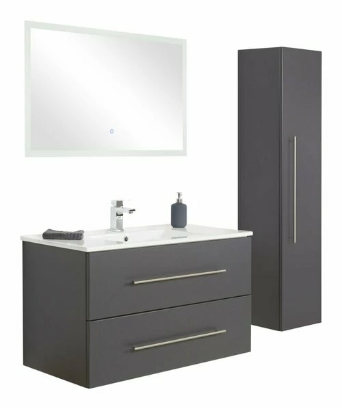 3-teiliges LED-Badmöbel-Set HOMELINE – Anthrazit Seidenglanz – 100 Cm