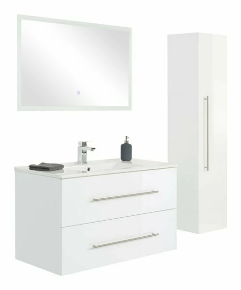 3-teiliges LED-Badmöbel-Set HOMELINE – Weiß Hochglanz – 100 Cm