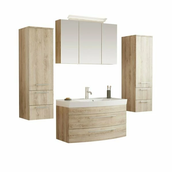 5-teiliges Badmöbel-Set – Eiche Hell – 100 Cm