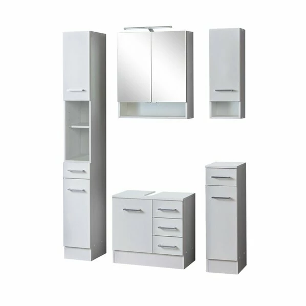 5-teiliges Badmöbel-Set RIGA – Weiß – Mit Beleuchtung