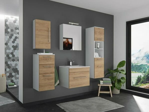 5-teiliges Badmöbel-Set VIVA 60 – Eiche Hell – Weiß