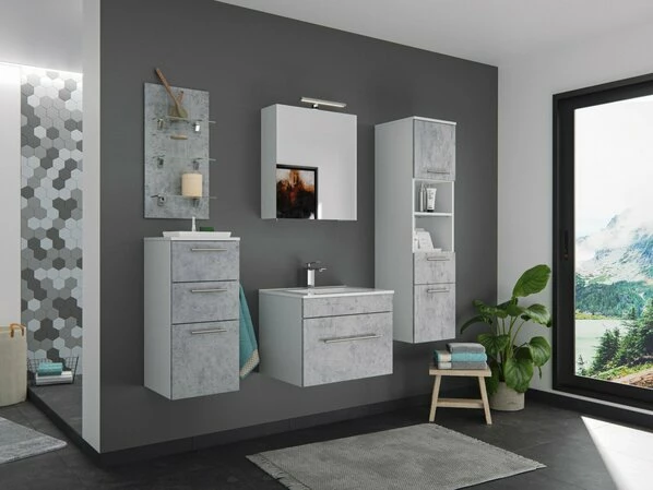 5-teiliges Badmöbel-Set VIVA – Beton-Optik – Weiß
