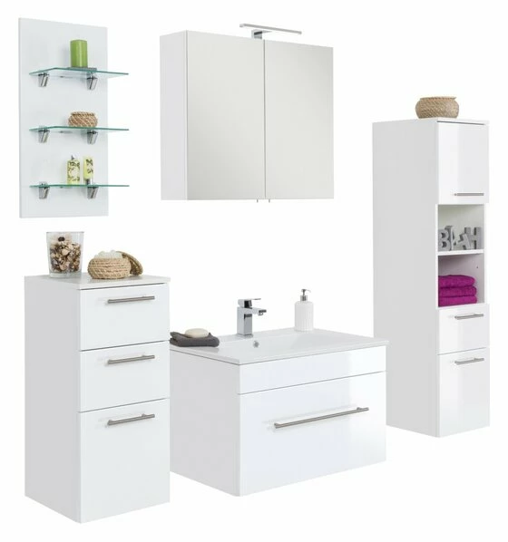 5-teiliges Badmöbel-Set VIVA – Weiß Hochglanz