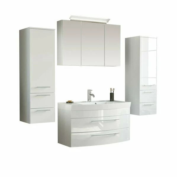 5-teiliges Badmöbel-Set – Weiß Hochglanz – 100 Cm