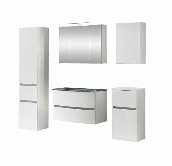 5-teiliges Badmöbelset KOPENHAGEN – Weiß Matt – Glasbecken Grau