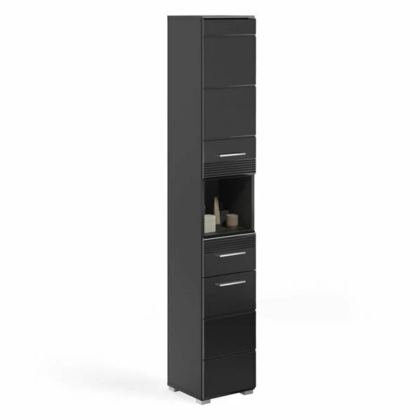 Hochschrank LINUS – Schwarz-schwarz Hochglanz – 182 Cm Hoch