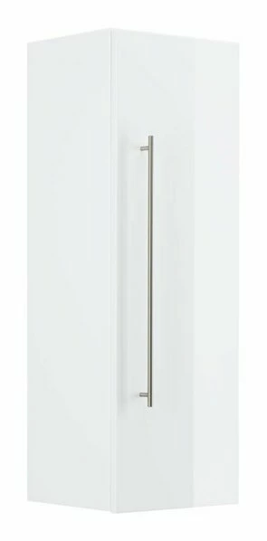 Bei diesem modernen Badezimmerschrank handelt es sich um einen vertikal ausgerichteten Hochschrank mit weißer Hochglanz-Lackierung, der ungenutzten Platz im Badezimmer in praktischen Stauraum verwandelt. Der gesamte Stauraum im Inneren ist über die Softclose-Tür an der Frontseite leicht erreichbar. Der vertikal länglich und horizontal schmal gestaltete Hochschrank lässt sich äußerst platzsparend montieren, sodass potenziell verfügbarer Stauraum bestmöglich genutzt werden kann. Außerdem bieten die Hochglanz-Lackierung und der Handgriff aus Edelstahl sehr unempfindliche und pflegeleichte Oberflächen, die langfristig für ein ansprechendes Erscheinungsbild sorgen.