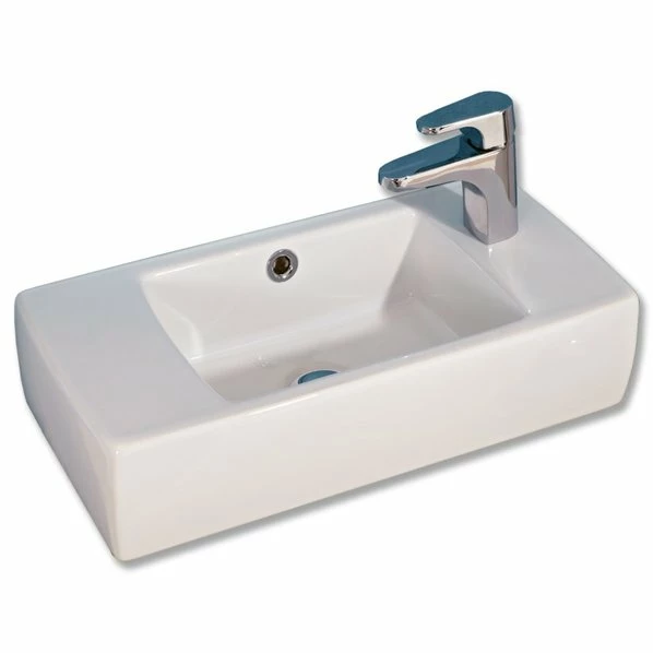 Der edle Keramikwaschtisch im klassischen Weiß erzeugt in Ihrem Badezimmer eine tolle Optik und lässt sich mit vielen Einrichtungsstilen kombinieren. Der Anschluss für die Armatur befindet sich auf der rechten Seite des Waschbeckens.
