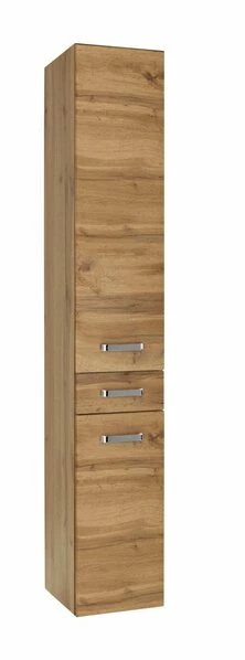 Schöner Seitenschrank BOLOGNA für Ihr Badezimmer. Der Korpus und die Front sind in Wotan Eiche Nachbildung gehalten. Er ist mit zwei Drehtüren und einem Schubkasten ausgestattet, die sich durch die Softclose-Funktion und dem Türdämpfer sanft schließen lassen.