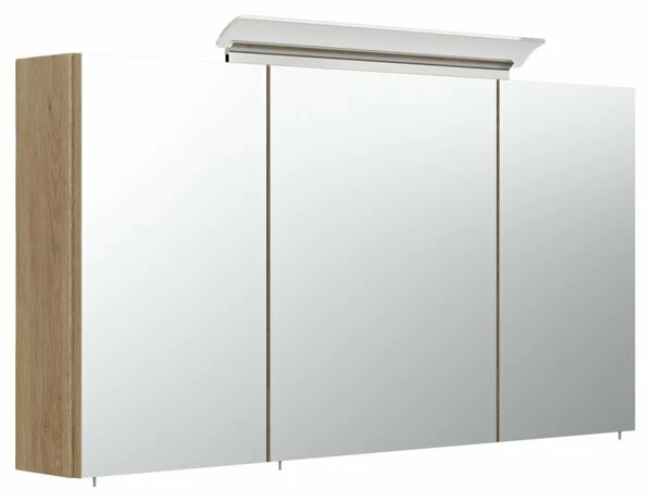 Die Kombination aus dem Korpus in der hellen Eiche und der 120 cm breiten Spiegel-Front, lässt sich sehen! Dabei dient das schöne Design einer umso höheren Nützlichkeit, denn die Breite des Spiegelschrankes ermöglicht Ihren Badprodukten einen hohen Aufbewahrungsraum. Die Leuchte am oberen Rand des Spiegelschrankes gibt Ihnen in jeder Tageszeit reichlich viel Helligkeit in einer neutralweißen Lichtfarbe.