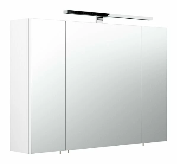 Der weiße und 3-türige Spiegelschrank MULTI-USE ist mit seiner Farbgebung und einer Breite von etwa 90 Zentimetern in fast jedem Badezimmer einsetzbar. Er ist mit seiner LED-Beleuchtung nicht nur der ideale Helfer für Ihr Styling, zudem bietet er hinter den Türen reichlich Stauraum für Ihre Cremes, Zahnbürsten und Co.