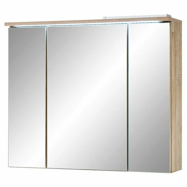 Mit diesem Spiegelschrank wird die morgendliche Routine zum Highlight! Dank kaltweißer LED-Beleuchtung können Sie sich hier problemlos für den Tag vorbereiten. Hinter den drei Spiegeltüren finden Sie drei Einlegeböden, auf denen Sie beispielsweise Ihre Pflegeprodukte lagern können.