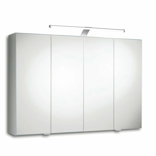 Unverzichtbar in jedem Badezimmer ist dieser schicke Spiegelschrank mit LED-Beleuchtung. Der Schrank mit 4 Spiegeltüren verfügt mit seinen 6 Einlegeböden über ausreichend Stauraum für Ihre Badutensilien und Kosmetika und ist mit einer Steckdose sowie einer super praktischen LED-Beleuchtung ausgestattet.