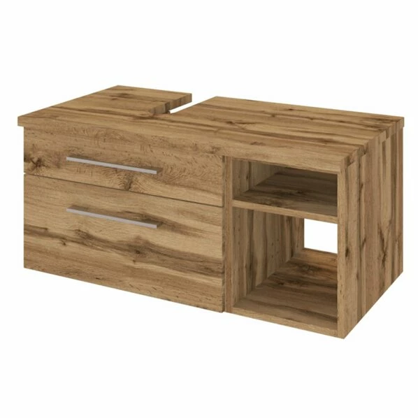 Dieser bezaubernde Unterbeckenschrank von der Serie DAVOS bringt Ihrem Bad eine komfotable Atmosphäre, welche durch die qualitative Nachbildung der Wotaneiche ermöglicht wird. Der Unterbeckenschrank sieht nicht nur gut aus, sondern verfügt auch über einen großen Aufbewahrungsplatz in Form eines Regals und zwei Schubfächern. Überzeugen Sie sich selbst von der Vielfalt dieses Unterbeckenschrankes als stilvolles Statement und als perfekte Aufbewahrung.