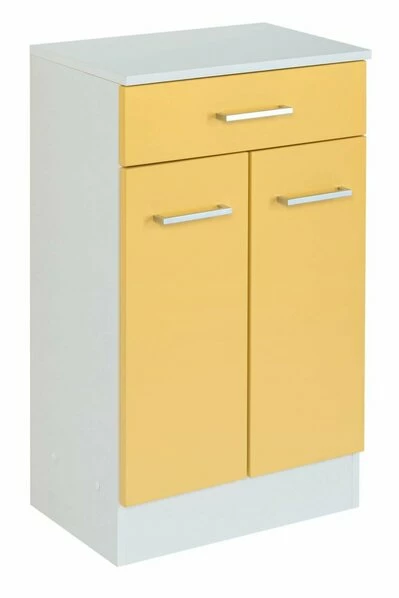 Mit diesem schönen Unterschrank der Serie RIGA erhalten Sie eine tolle Ergänzung zu Ihrem Wohnraum. Dieser Unterschrank bietet neben einem Schubfach auch einen weiteren Stauraum mit einem Einlegeboden. Das zeitlose und gleichzeitig moderne Design wird durch die gelbe Front besonders hervorgehoben. Außerdem lässt sich dieser Schrank wunderbar mit weiteren Artikeln dieser Serie kombinieren.