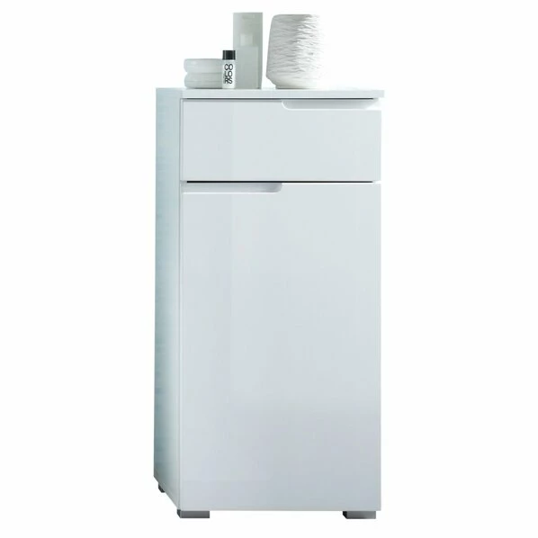 Der Unterschrank komplettiert Ihr neues Bad und liefert neben einem modernen Design auch genügend Stauraum. Hinter einer Tür finden Sie den durch einen Einlegeboden aufgeteilten Stauraum. Zusätzlich lassen sich kleinere Badutensilien in dem Schubkasten verstauen.