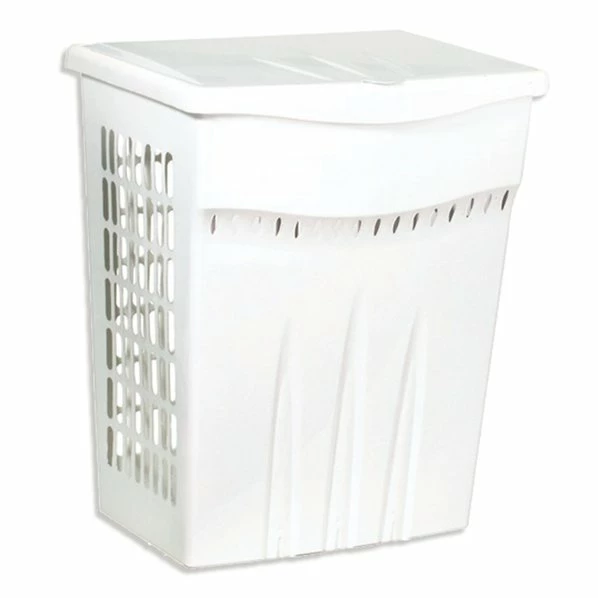 Praktische Wäschebox mit Klappdeckel und Lüftungsöffnungen. Perfekt für die Aufbewahrung Ihrer Wäsche, leicht zu transportieren, zu befüllen und entleeren.