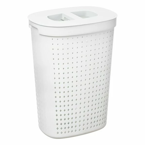 Der Wäschesammler in Weiß fasst etwa 60,8 Liter Schmutzwäsche. Ein Stocken der Wäsche wird durch die Belüftungsschlitze vermieden. Zudem verfügt der Wäschesammler über einen Deckel.
