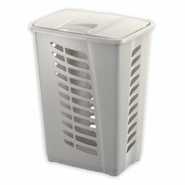 Der Wäschesammler im Farbton Creme fasst bis zu 60 Liter Schmutzwäsche. Ein Stocken der Wäsche wird durch die Belüftungsschlitze vermieden. Zudem verfügt der Wäschesammler aus Kunststoff über einen Deckel.