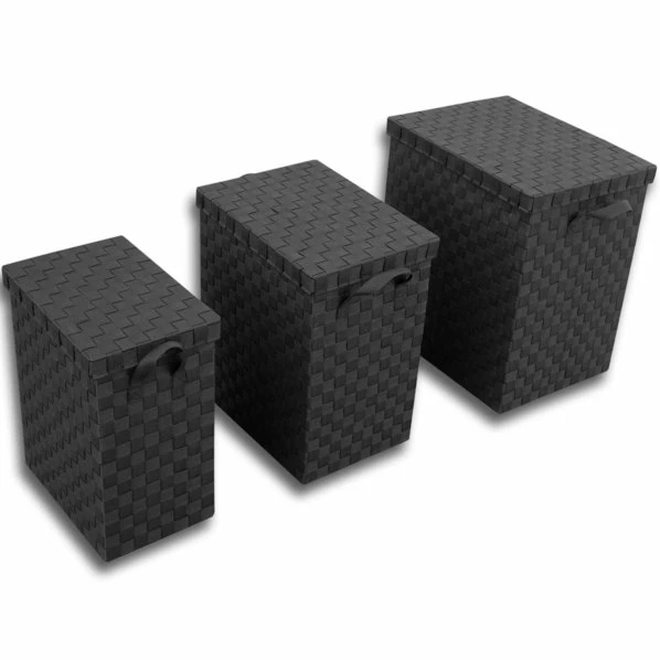 Die anthrazitfarbene Wäschetruhe Größe XL in Flechtoptik bietet Ihnen Platz für Ihre Wäsche oder andere Dinge, die Sie verstauen möchten. Sie ist ausgestattet mit einem Deckel und praktischen Trageschlaufen und sorgt für Ordnung in Ihrem Haushalt.