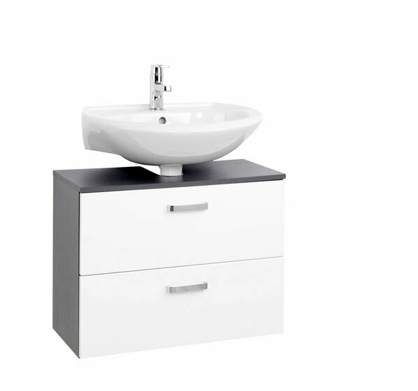 Waschbeckenunterschrank BOLOGNA – Grafitgrau-weiß Hochglanz – 70 Cm