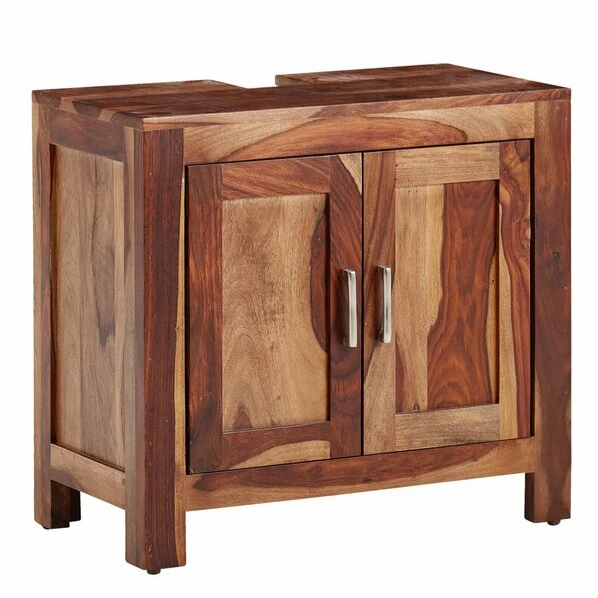 Überzeug dich selbst von diesem einzigartigen Waschbeckenunterschrank. Hierbei wirst du sofort die gute Verarbeitung des Sheeshamholzes merken. Zudem verfügt er mit den beiden Türfächern über genügend Platz, um deine Utensilien zu verstauen