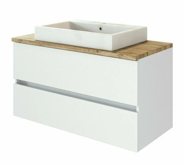 Diesen weißen Waschtisch PIENZA müssen Sie einfach haben. Auf der Abdeckplatte in Wotan Eiche Nachbildung befindet sich das schöne Waschbecken aus Keramik. Außerdem ist der Waschtisch mit zwei Auszügen ausgestattet, in denen Sie all Ihre Badutensilien unterbingen können.