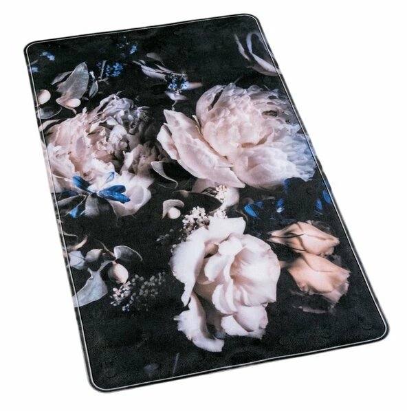 WENKO Wanneneinlage PEONY – Schwarz-pastell – 40×70 Cm